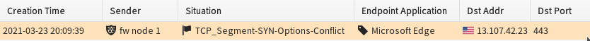 The next one baffles me. I can guarantee you that I would not use Edge voluntarily, so this one is Windows doing its magic on the background. We can see that Edge is making a TCP connection to a legitimate Microsoft IP, to the HTTPS port 443. However, we can see that the SYN-ACK packet sent by the server used different options than the original SYN packet sent by the client. Honestly, I understand that you own the client and you own the server so it is a wild wild west of endless possibilities – but come on, you cannot even agree on the TCP options?! It is like you and your mate have a secret handshake, but each of you uses a different one!