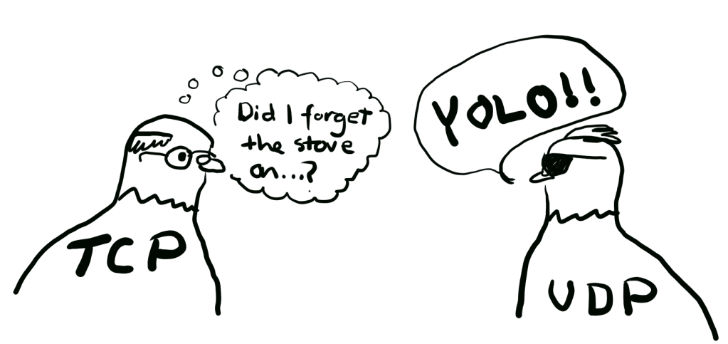 TCP and UDP are by far the most utilised transport protocols in the Internet, which is why each of them deserves its own post. They are, however, on quite different levels in regards of complexity, which you will soon notice if you have read the previous post on TCP. And, for easier visualisation, we will again use our trusted carrier pigeons to transfer our data packets, with screen captures from Wireshark of what the information actually looks like!