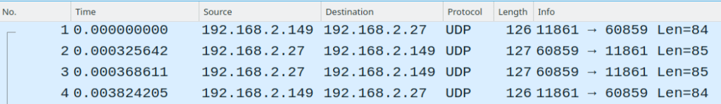 So, let us look at a few UDP datagrams being transported between two clients. We will now revisit DNS, but this time we will ignore what happens on the application layer (the actual DNS queries and responses) and instead focus on UDP. We will skip the checksums, as we did not focus on them with TCP either.